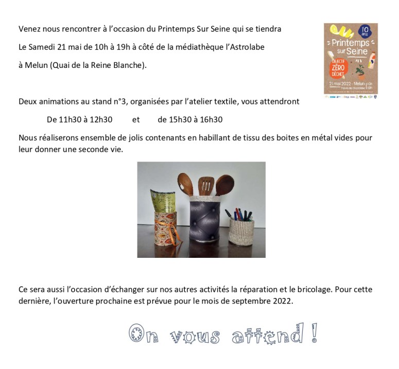 - Réparateurs partenaires : le chèque est à utiliser auprès des réparateurs partenaires : Actuellement seuls Les Ateliers du Coin de Melun ont été retenus.